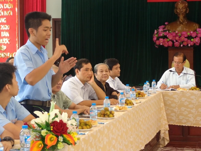 Em Nhật Quang “nói chuyện” tại hội nghị.