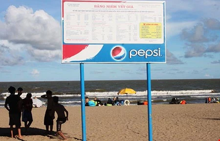 Bảng niêm yết giá và số đường dây nóng được gắn ngay trên bãi biển. Nhờ biện pháp này, nạn “chặt chém” ở Sầm Sơn đã giảm. Ảnh: Quang Minh