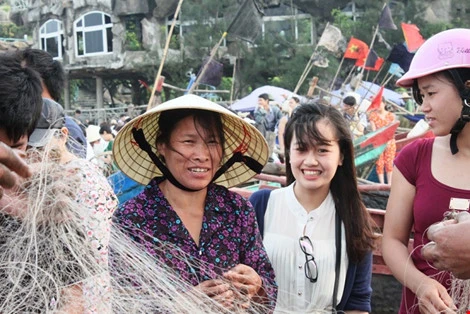 Du khách có dịp trải nghiệm của ngư dân Sầm Sơn. Ảnh: Quang Minh
