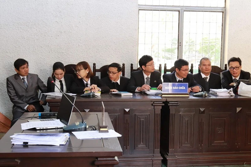 Có nhiều luật sư tham gia bào chữa tại tòa. Ảnh H.TRƯỜNG