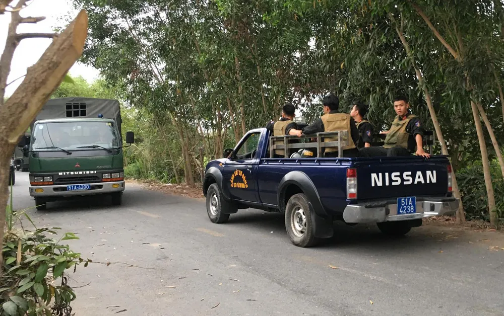 14 giờ 40 chiều 31-1, lực lượng CSCĐ lên một số xe tải rời khỏi khu vực vây ráp hai ngày qua ở khu vực đường Huỳnh Thị Bẳng và lân cận thuộc xã Trung An, huyện Củ Chi.