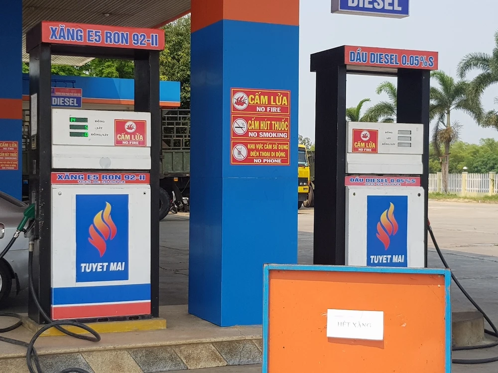 Cửa hàng xăng dầu số 6 - Bình An thông báo hết xăng. Ảnh: THANH NHẬT