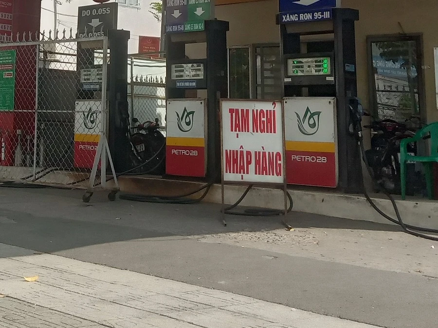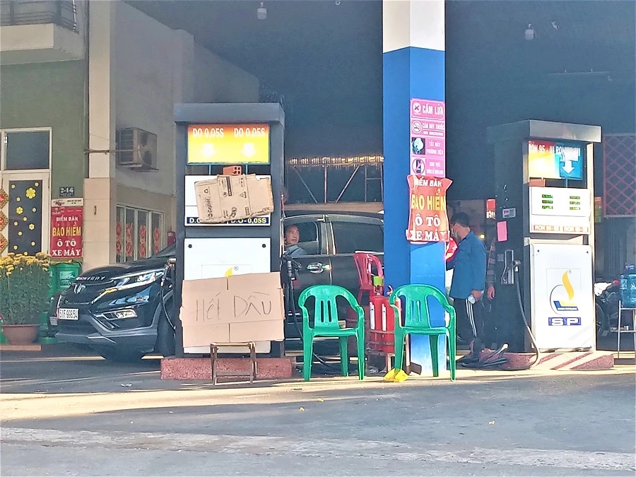 Sáng 14-2 cửa xăng quận Tân Bình treo bảng hết dầu, chiều ngày 15-2 cửa hàng này vẫn treo bảng hết dầu.