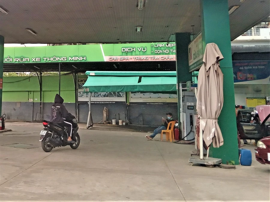 Khoảng 14 giờ 30 một cây xăng trên đường Phan Văn Trị, quận Gò Vấp nhập hàng, tạm nghỉ bán.