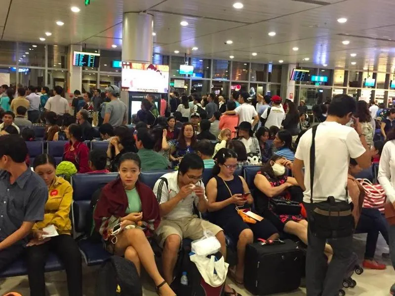 Hàng ngàn hành khách đang phải chờ đợi tại sân bay Tân Sơn Nhất vì các chuyến bay bị hoãn.