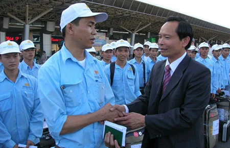 Lao động Việt Nam trong một đợt tuyển của Công ty Airseco trước giờ xuất cảnh sang Qatar làm việc
