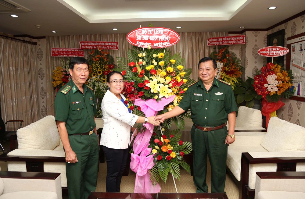 Bộ Tư lệnh Bộ đội biên phòng thăm và chúc mừng báo Pháp Luật TP.HCM nhân ngày báo chí 21-6. Ảnh: HOÀNG GIANG