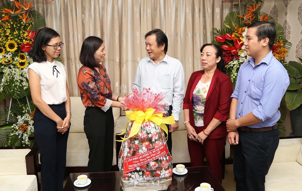 Liên đoàn Lao động TP.HCM thăm và chúc mừng báo Pháp Luật TP.HCM nhân ngày Báo chí Cách mạng VN 21-6. Ảnh: HOÀNG GIANG