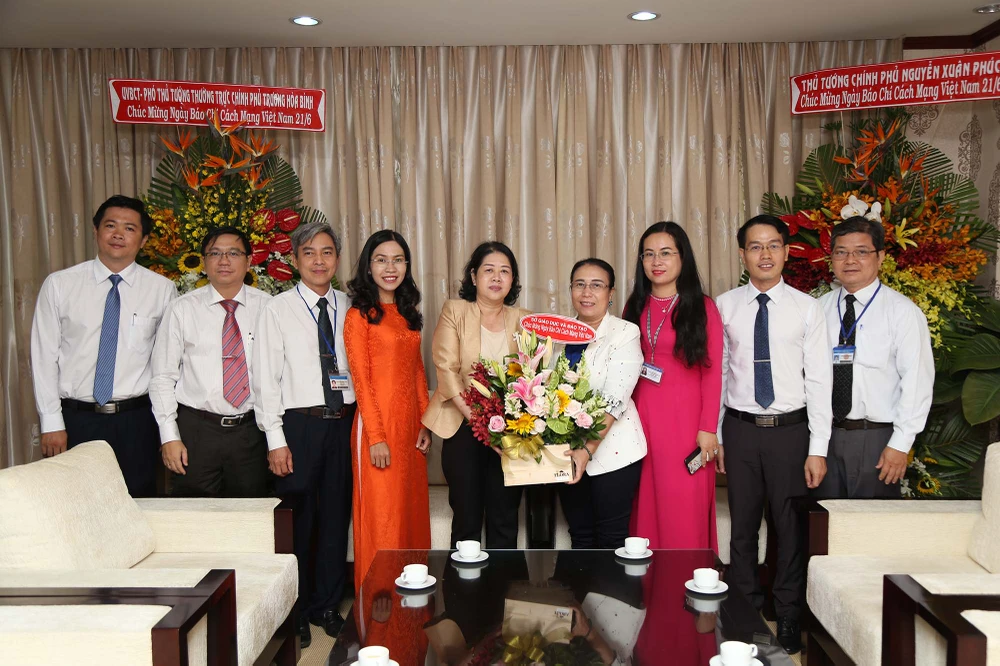 Sở GD&ĐT TP.HCM thăm và chúc mừng báo Pháp Luật TP.HCM. Ảnh: HOÀNG GIANG