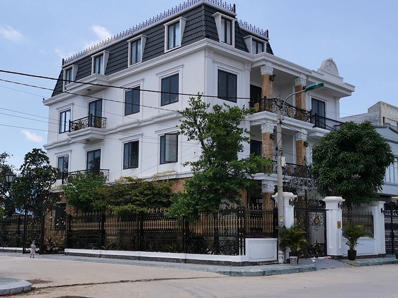 Bên đường Đồng Xá, một căn nhà nằm ngay ngã ba, thời điểm cuối năm 2018 khi bị đình chỉ, căn nhà này mới chỉ xây dở tầng một. Từ đầu năm 2020, chủ nhà đã cấp tập xây dựng lên ba tầng, biến thành căn biệt thự tráng lệ có tường bao, cổng sắt hoành tráng.