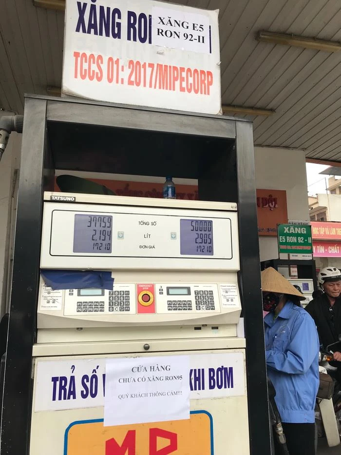 Cột bơm xăng A95 tại một số cửa hàng được thay thế bằng xăng sinh học E5. Nhân viên tại một cửa hàng cho hay thường xuyên hỏi tổng công ty về nguồn cung xăng A95 nhưng chưa biết khi nào mới có hàng về.