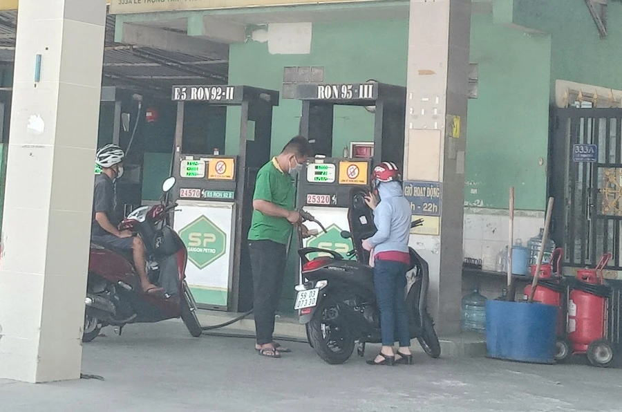 Cửa hàng xăng quận Tân Phú sau khi tạm hết xăng A95 hôm nay đã mở bán lại bình thường. ẢNH: TÚ UYÊN