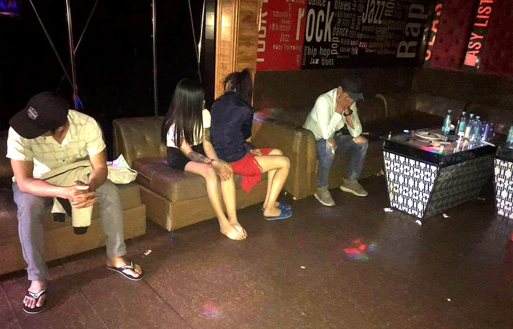 Công an bắt quả tang nhiều người dương tính ma túy tại quán karaoke Chiều Thứ Tư. Ảnh: L.Q.LOAN