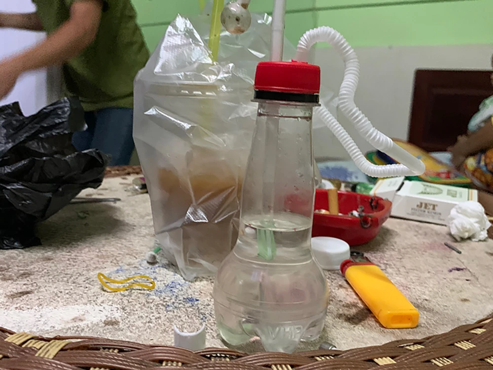 Dụng cụ sử dụng ma túy đá trong khách sạn bị phát hiện. Ảnh: CA