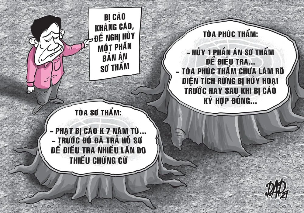 Cấp sơ thẩm cũng chưa điều tra, xác minh và thu thập đầy đủ chứng cứ để xác định diện tích rừng được giao, việc giao rừng có đúng quy định của pháp luật hay không và tuyên buộc trách nhiệm bồi thường thiệt hại do rừng bị hủy hoại gây ra… Từ đó, HĐXX đã tuyên án như trên.