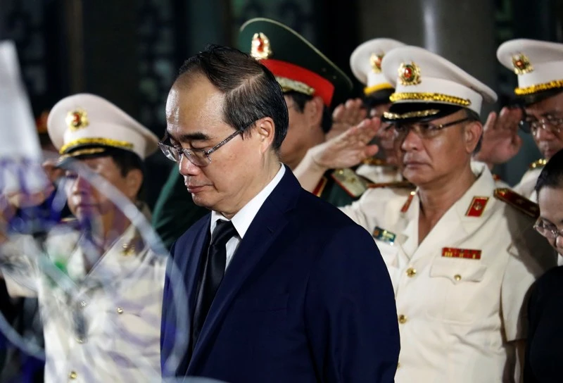 Bí thư Thành ủy TP.HCM Nguyễn Thiện Nhân đến viếng. Ảnh: Nguyệt Nhi