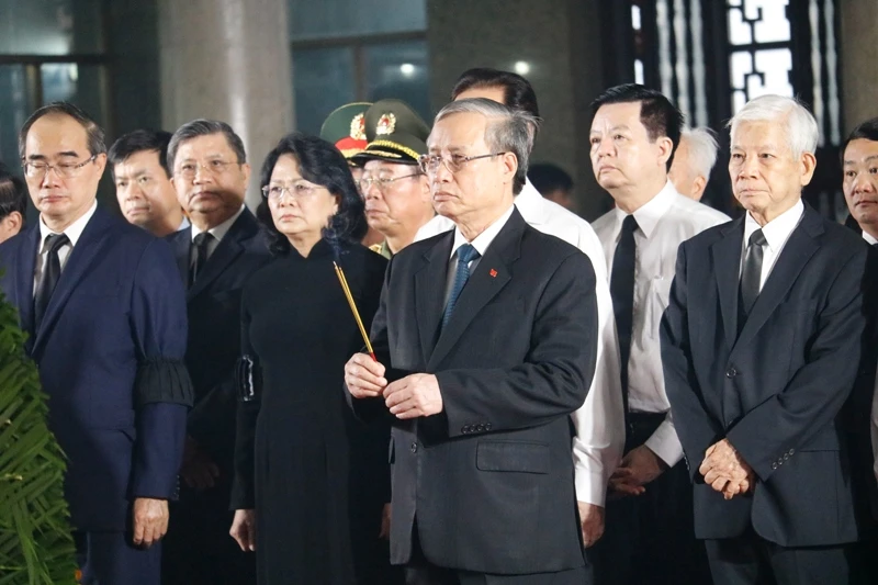 Đến viếng còn có đoàn Quốc hội do Đại tướng Đỗ Bá Tỵ, Phó Chủ tịch Quốc hội dẫn đầu.