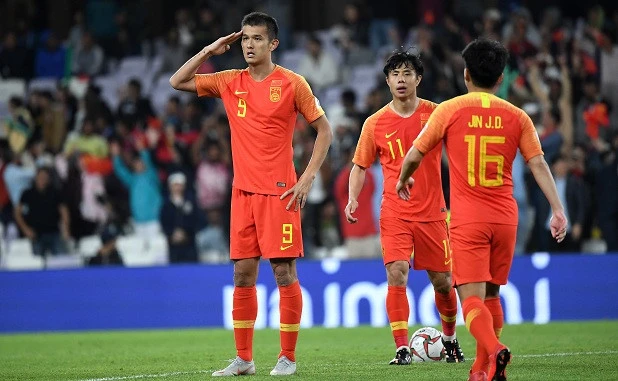 Tiền đạo Xiao Zhi của Trung Quốc cũng nhanh chóng “copy” cách ăn mừng trên khi ghi bàn gỡ hòa.