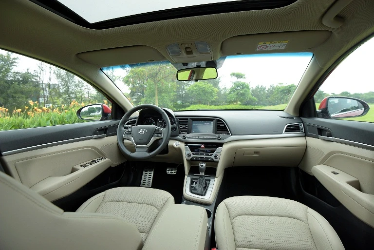 Elantra 2016 trang bị cửa sổ trời giúp tạo nên sự hòa nhập của không gian xe.