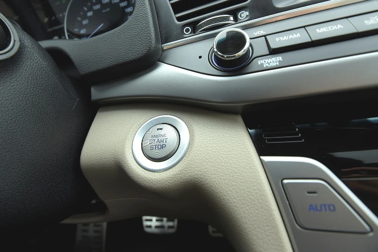 Elantra 2016 sử dụng chìa khóa thông minh Smartkey cùng nút bấm khởi động Start/Stop engine.