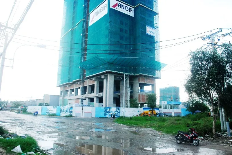 Được quảng cáo đẳng cấp hàng đầu quận 7 nhưng phía trước dự án An Gia Riverside là con đường lầy lội