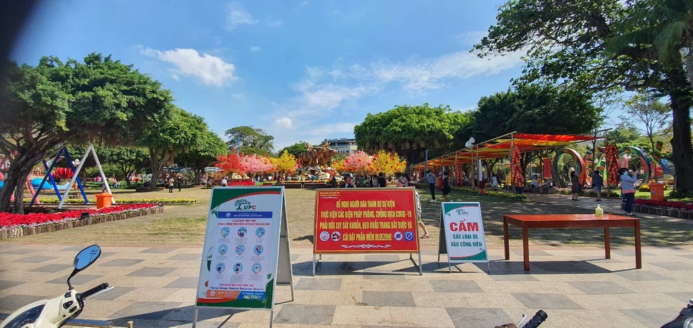 Tại các điểm vui chơi công cộng đều có thông báo yêu cầu người dân chấp hành nghiêm các biện pháp phòng chống dịch-Ảnh:TK