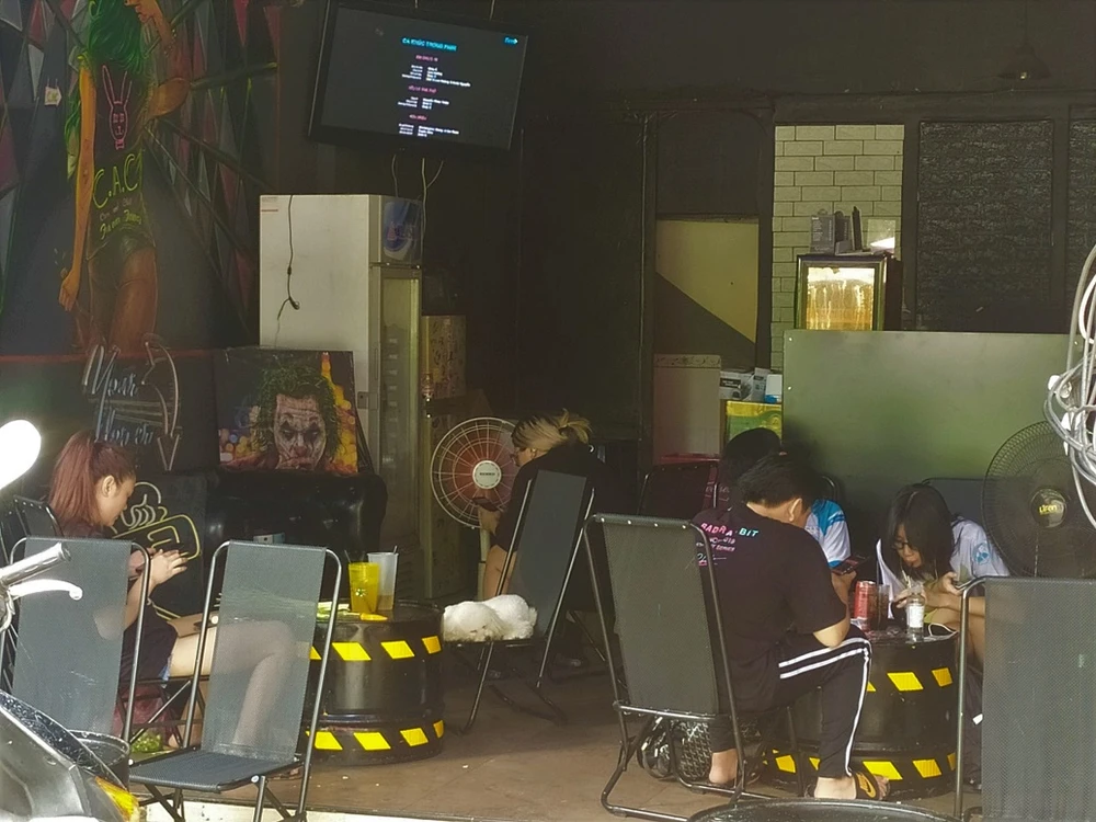 Tuy vậy, nhiều quán cà phê trên đường Trường Sa (quận Tân Bình) vẫn mở cửa đón khách tại chỗ. Khách ở những quán này khá đông, khi ngồi không đảm bảo khoảng cách 2 m.
