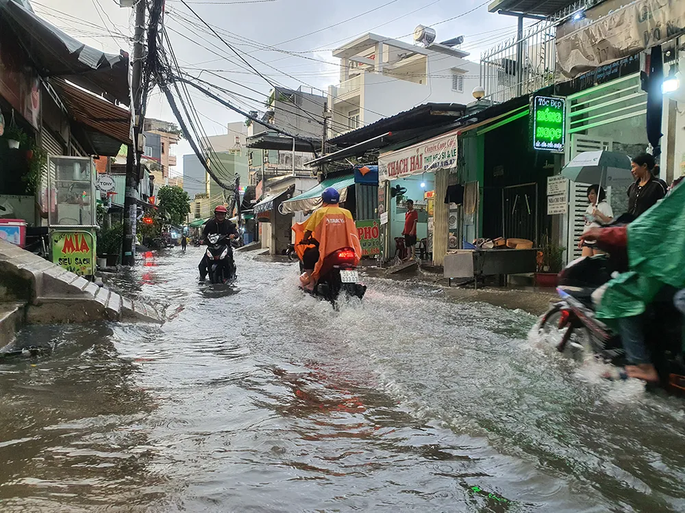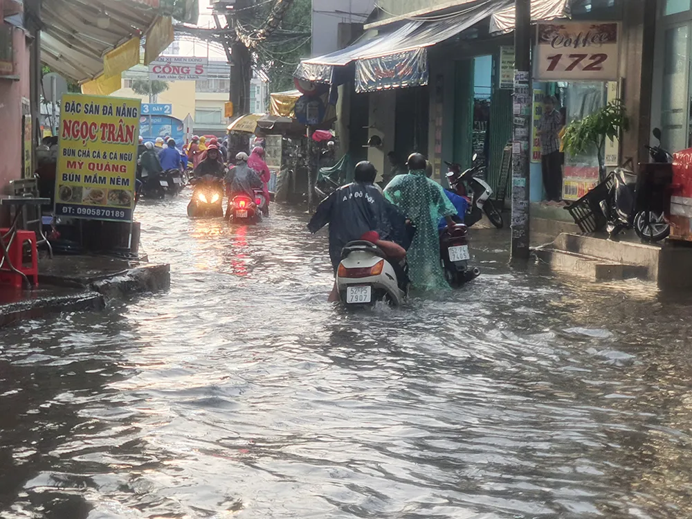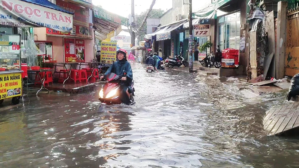 Mưa lớn khiến nhiều con hẻm tại TP.HCM ngập sâu. Ảnh: NGUYỄN YÊN