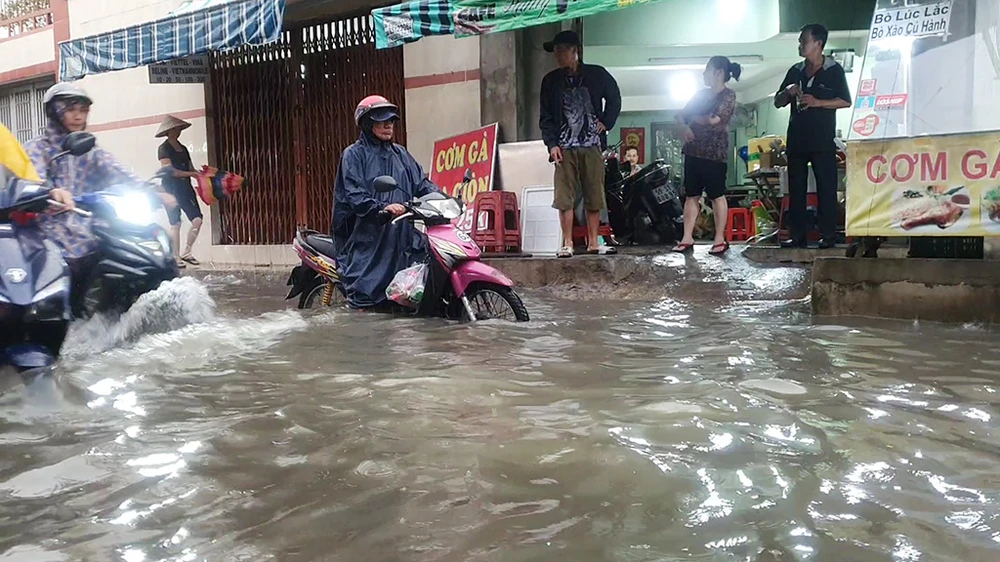 Mưa lớn liên tục khiến tình trạng ngập xảy ra thường xuyên hơn. Ảnh: NGUYỄN YÊN