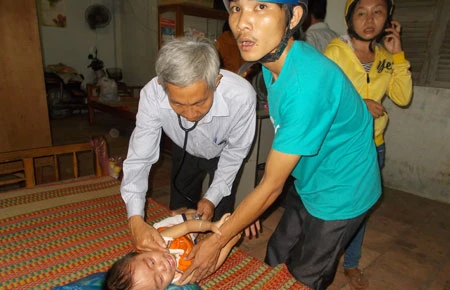 Một em bé được đưa vào trạm cấp cứu vì bị sốt co giật, khó thở trong tối mùng 4 tết. Ảnh: HUY THÔNG