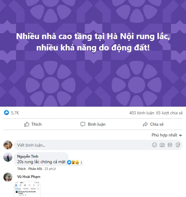 Trên mạng xã hội, nhiều người cũng chia sẻ, trao đổi với nhau về trận rung lắc này.