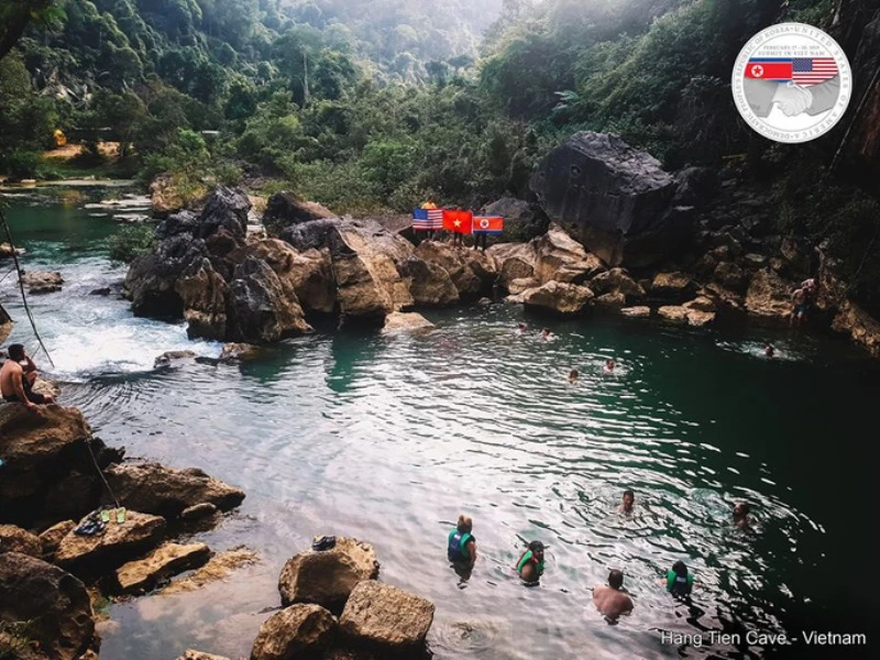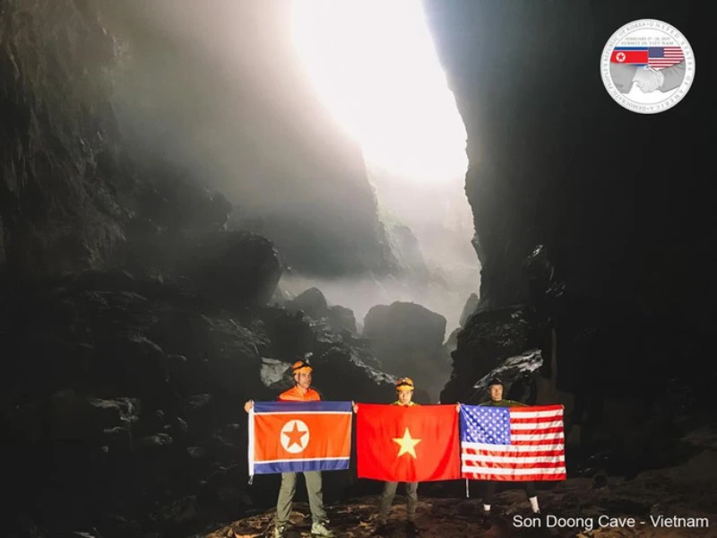 Cụ thể, ông Á đã chụp nhiều hình ảnh có quốc kỳ của Việt Nam, Mỹ và Triều Tiên tại các điểm của hang Sơn Đoòng, Tú Làn, Hang Tiên, Hang Én, chào mừng sự kiện Hội nghị thượng định Mỹ- Triều.