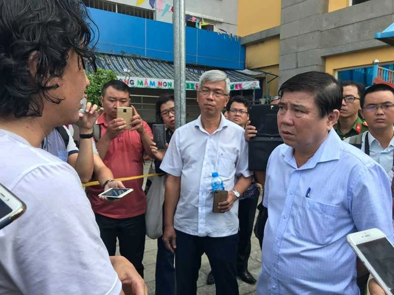 Chủ tịch UBND TP.HCM Nguyễn Thành Phong xuống hiện trường chỉ đạo các lực lượng khắc phục hậu quả vụ cháy. Ảnh: L.THOA