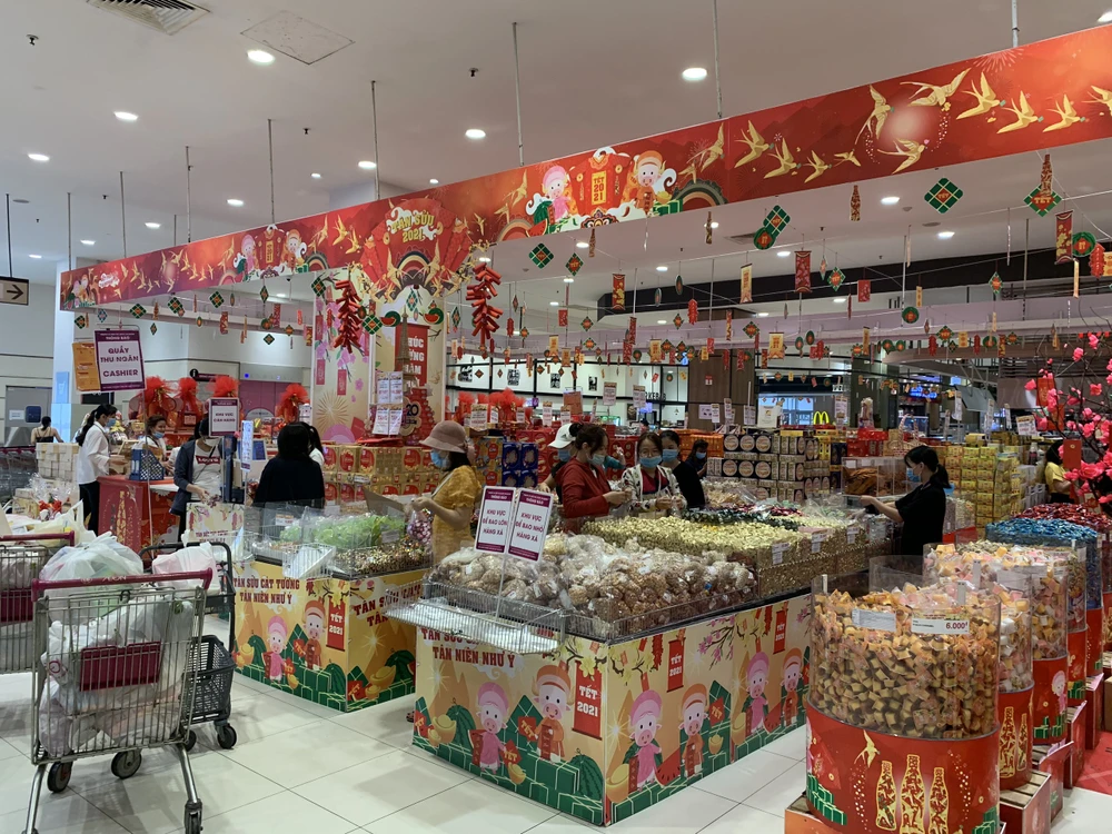 Khách hàng chọn bánh kẹo mứt tại siêu thị Aeon Celadon Tân Phú.