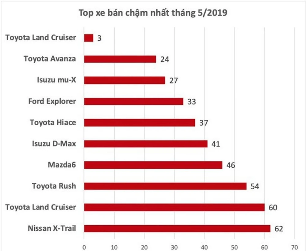 Theo Hiệp hội các nhà sản xuất ô tô Việt Nam (VAMA), danh sách xe bán chậm nhất tháng 5-2019 có sự góp mặt của 5/10 xe thuộc thương hiệu Toyota. Trong số đó có Rush và Avanza là hai mẫu xe mới nhất được Toyota Việt Nam giới thiệu ra thị trường.