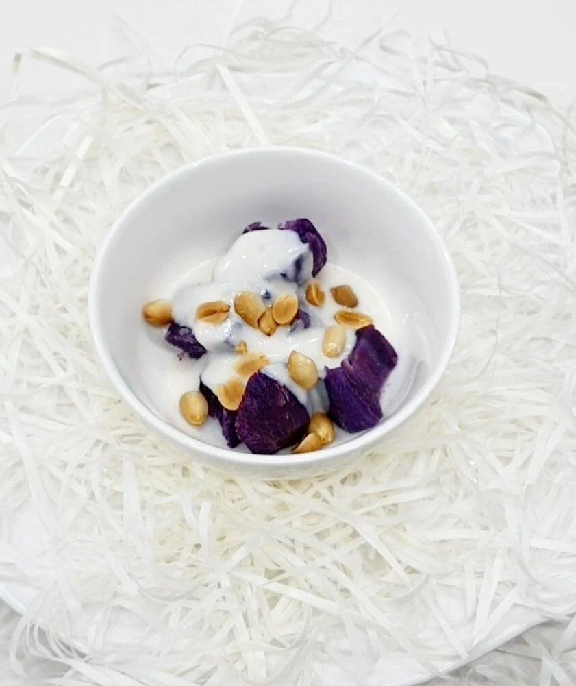 Món khoai lang tím hấp cốt dừa. Ảnh: NVCC