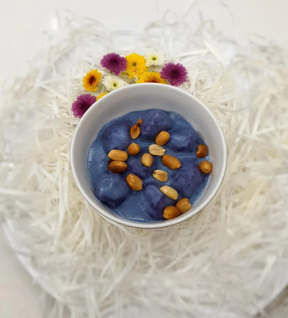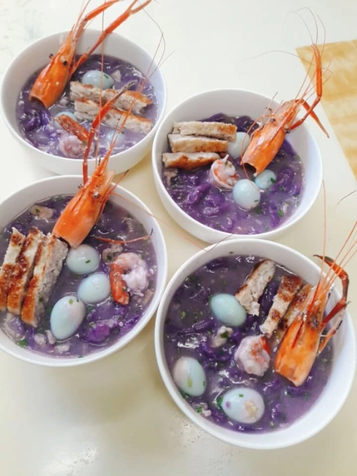 Bánh canh với sợi bánh canh làm từ khoai lang tím. Ảnh: NVCC