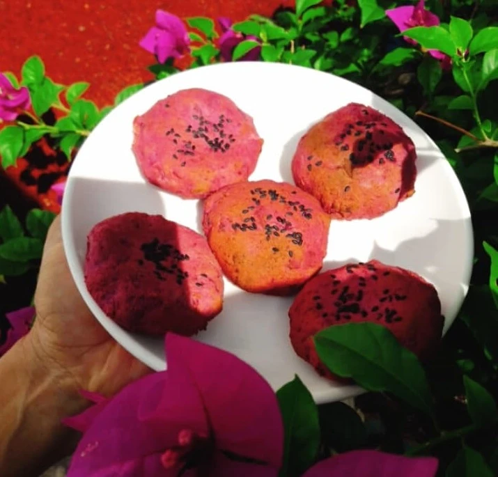 Bánh rán được chị Trâm sáng tạo từ khoai lang tím. Ảnh: NVCC