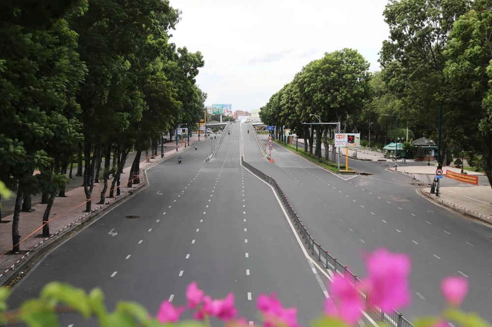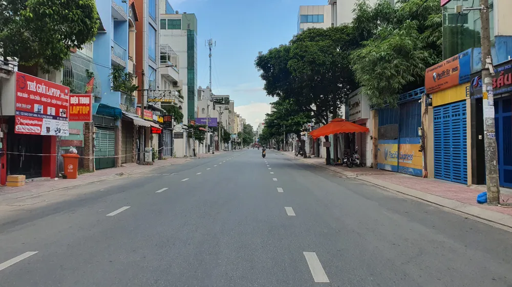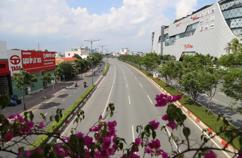 Đường Phạm Văn Đồng vắng bóng người qua lại, không còn đông tập nập như trước.