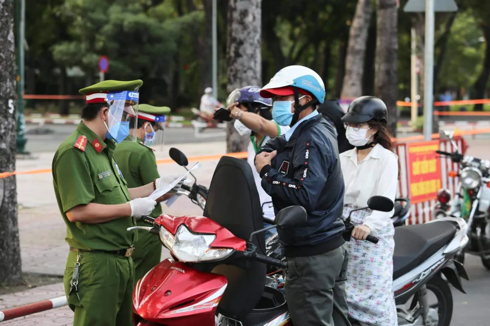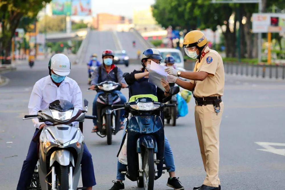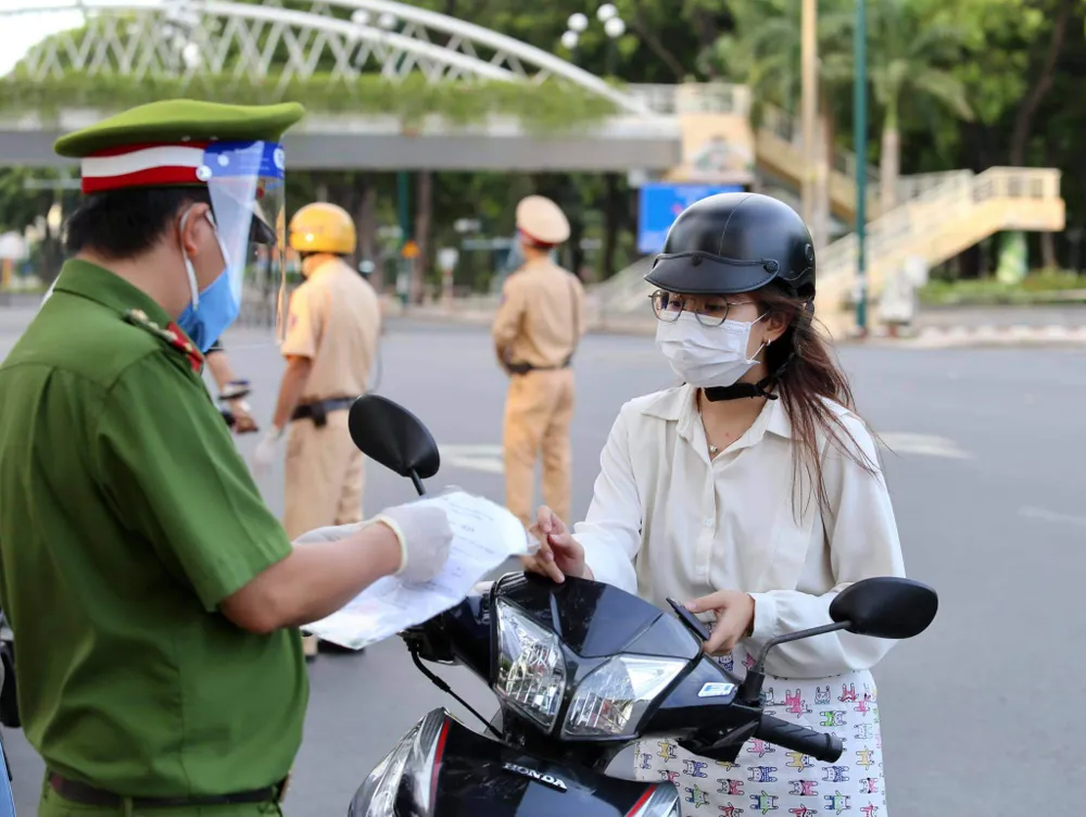 Lực lượng chức năng kiểm tra giấy tờ cũng như việc ra đường của người dân.