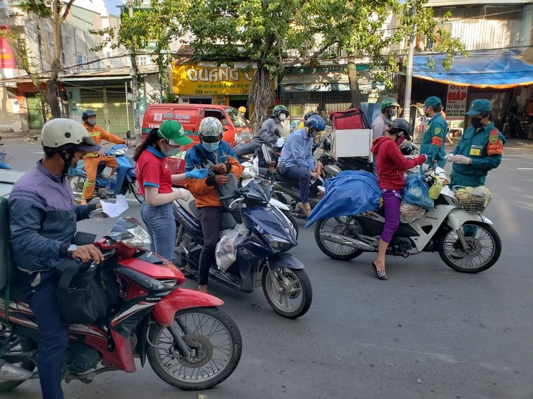 “Tôi cũng không rõ là sau 18 giờ có được có đi giao hàng hay không, nhưng cũng sợ bị phạt khi ra đường nên tranh thủ giao giờ chót” một tài xế grab giao hàng từ Thủ Đức qua Bình Thạnh cho biết.