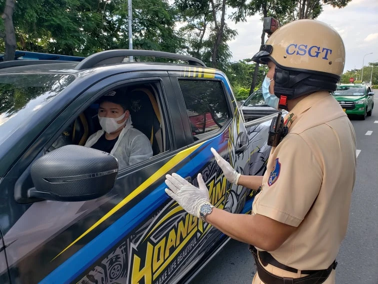 “Anh quay đầu đi lên hướng TP Thủ Đức để về Thảo Điền đi, Thủ Đức không đi qua quận Bình Thạnh được” một CSGT giải thích cho tài xế ô tô.