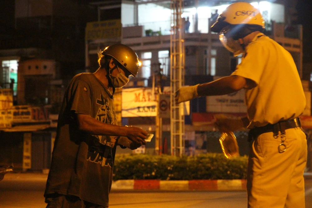 Đội CSGT – TT (KV3) Công an TP Thủ Đức, TP.HCM đã xử lý nhiều trường hợp người dân ra đường sau 18 giờ đến 6 giờ sáng hôm sau trong trường hợp không cần thiết.