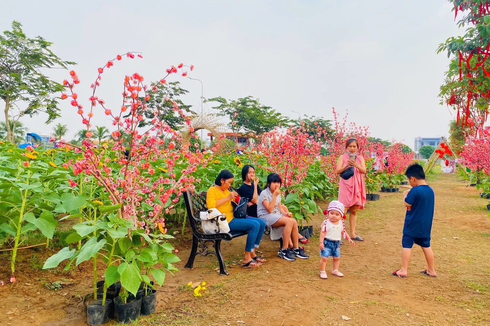 Bạn Nhật Trang (quận 2) chia sẻ: “Thời tiết hôm nay rất đẹp, tôi cùng bạn đến đây để chụp bộ ảnh mới đón Tết. Nhìn chung, hoa tại vườn đã nở khoảng 90%, tôi chụp được rất nhiều ảnh ưng ý."