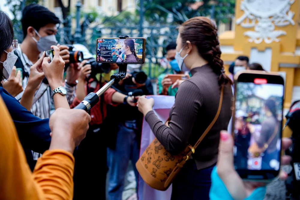 Nhiều Youtuber có mặt trước cổng tòa. |