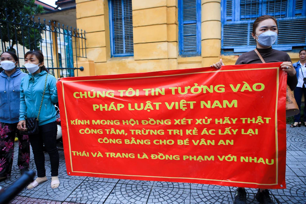 (PLO)- Sáng 21-7, nhiều người dân mang theo băng rôn đứng trước cổng TAND TP.HCM thể hiện sự bức xúc đối với các bị cáo trong vụ án bé gái 8 tuổi bị đánh chết ở Bình Thạnh.
