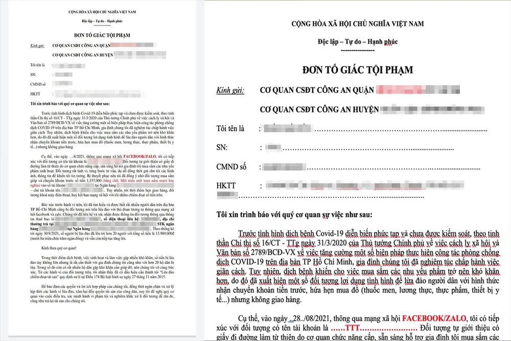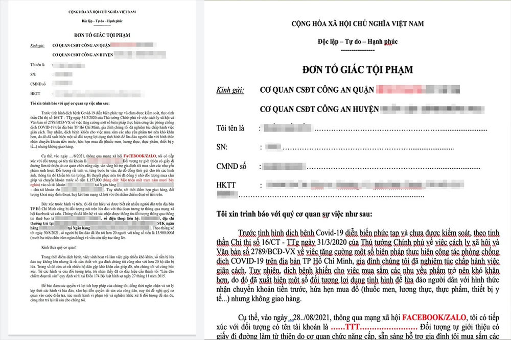 | Muôn kiểu lừa đảo mùa dịch Dịch bệnh phức tạp, người dân không thể ra ngoài, nhiều đối tượng lừa đảo sử dụng mạng xã hội, vào các hội nhóm cư dân, chung cư trên mạng xã hội để đăng bán hàng, quảng bá dịch vụ tiêm vaccine, bán các sản phẩm có khả năng phòng ngừa virus để lừa người dân. Nhiều đối tượng còn tạo các website bán hàng trực tuyến các vật tư y tế cần thiết trong mùa dịch như khẩu trang, nước rửa tay khử khuẩn, máy đo nồng độ ôxy… Tuy nhiên, sau khi người mua chuyển khoản, đối tượng sẽ cắt liên lạc và không giao hàng như hứa hẹn. Hiện nay, TP đã có nhiều chương trình an sinh hỗ trợ người dân về y tế, lương thực, thực phẩm qua tổng đài 1022 và các đường dây nóng ở từng địa bàn người dân cư trú. Khi có nhu cầu cần hỗ trợ, người dân nên liên hệ các địa chỉ trên để được hỗ trợ, tránh bị lừa đảo. Một lãnh đạo Công an TP.HCM |