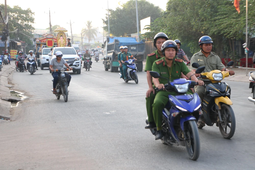 Lực lượng công an dẫn đường đưa đoàn xe tang ra nghĩa trang.