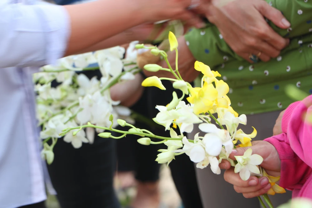 Mỗi người một cành lan đặt lên từng chiếc quan tài đưa tiễn các nạn nhân xấu số.