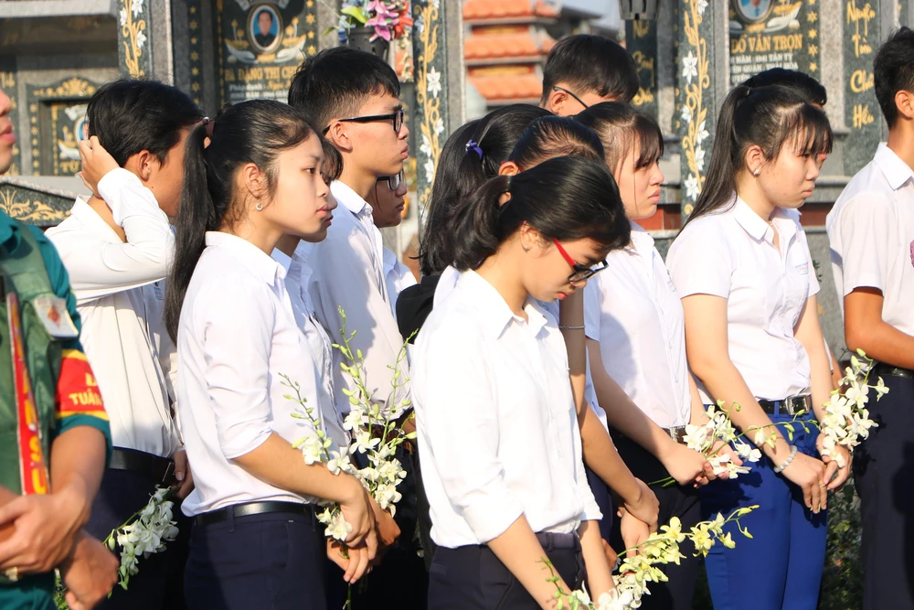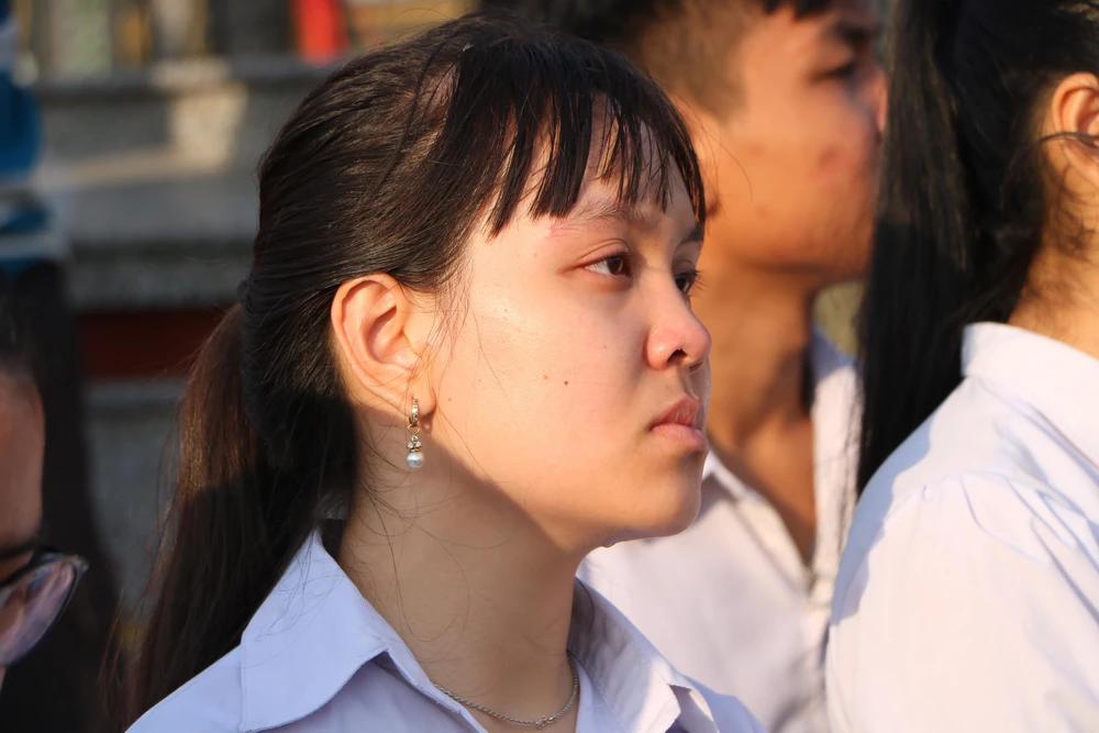 Những học sinh lớp 11A5, bạn của nạn nhân N. đến đưa tiễn người bạn xấu số